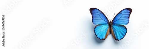 Vibrant blue butterfly with colorful wings on pure white , animal, butterfly wings