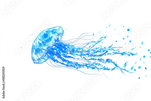 vibrant blue jellyfish illustration with flowing tentacles and splashes