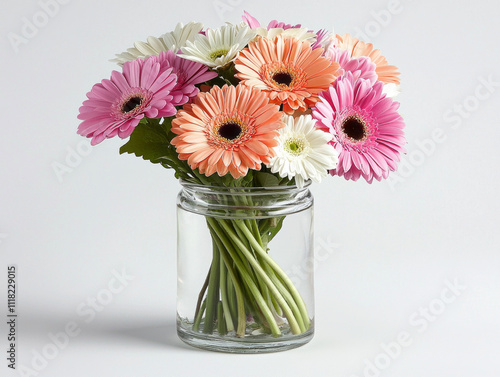 vibrant bouquet of mixed gerbera daisies in glass vase, brightening any space
