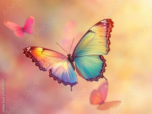 Vibrant Butterfly Displaying Colors in Soft Dreamy Background