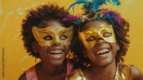 carnival, mask, laughing, smiling, friends, girl, black, yellow, pink, background, fun, happy, celebration, costume, party, entertainment, amusement, park, fair, festival