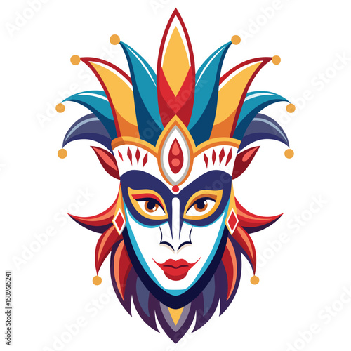 Vibrant Carnival Mask with Colorful Feather Accents and Ornate Details