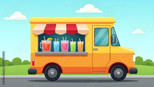 Vibrant Cartoon Food Truck Illustration Serving Soft Drinks for Creative Projects