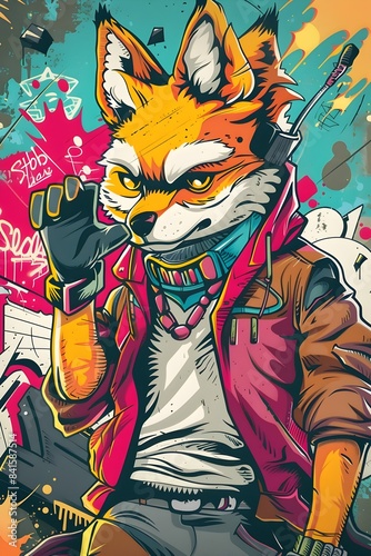 animal, fox, cartoon, graffiti, street art, urban, colourful, character, design, graphic, pop art, punk, modern, style, artwork, digital, creativity, hipster, city, wild, cute, fun, crazy, nature, wild animal, action, music, fashion, attitude, edgy, alternative, vibrant, bold, expressive, dynamic, mischievous, energetic, contemporary, imaginative