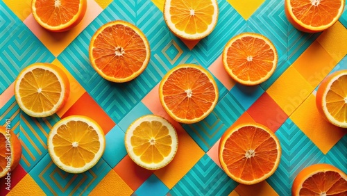 Vibrant Citrus Slices Arranged on a Geometric Colorful Background