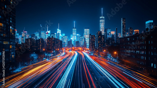 new york city, city lights, skyline, night time, traffic, long exposure, urban, vivid colors, city landscape, highway, infrastructure, energy, architecture, street light, vehicle, movement, city landscape, metropolitan, bridge, reflections, downtown, nightlife, travel destination, night scene, scenic view, modern architecture, travel
