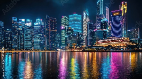 city, night, city landscape, skyline, building, skyscraper, light, water, colourful, vibrant, modern, architecture, urban, metropolis, downtown, panoramic, view, scene, background, image, photo, illustration, design, graphic, abstract, bright, illumination, glow, neon, dazzling, glittering, gleaming, sparkling, aglow, radiant, majestic, impressive, grand, spectacular, stunning, beautiful, awesome, fantastic, incredible, amazing