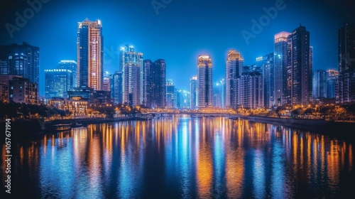 city, skyline, night, light, water, urban, architecture, tower, building, colourful, modern, illumination, river, blue, glowing, landscape, horizon, night time, scenic, scenic view, holiday maker, travel, destination, leisure, peaceful, beauty, calmness, bright, city life, evening, street, photo, panoramic, view, nature, city lights, metropolis, luxurious, waterfront