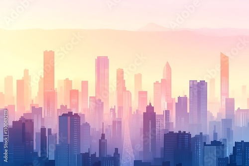 Vibrant Cityscape at Sunrise A Modern Metropolis Awakens Under a Colorful Sky