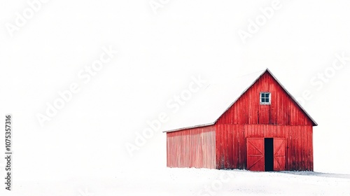 Vibrant Classic Red Barn in Rural Landscape Surrounded by Snowy Fields Under Clear Blue Sky, Capturing the Essence of Peaceful Country Living
