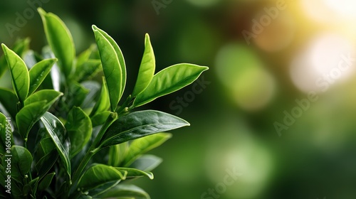Vibrant, close-up shot showcases lush, green leaves. Natural, botanical provides fresh, organic feel, perfect themes nature, growth, wellness. Captivating, blurred background adds depth visual