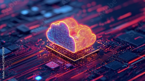 Vibrant Cloud Computing Concept with Neon Circuit Background