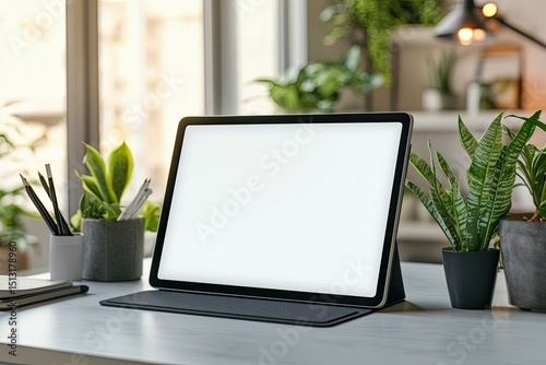 Vibrant Color Image of Technology and Workspace Mockup with Tablet
