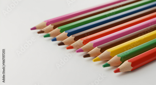 Vibrant Colored Pencils Arranged on White Background Perfect for Back to School Projects and Creative Designs
