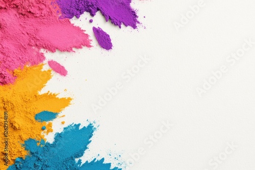 Vibrant colored powders scattered across a white background, creating an abstract and artistic composition suitable for creative projects and seasonal events