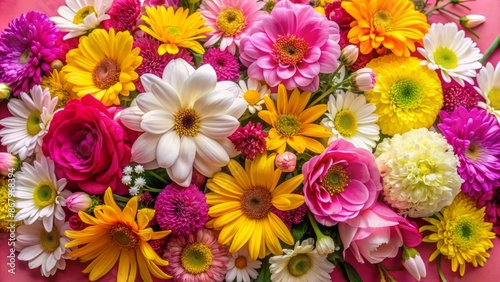 vibrant, colourful, arrangement, flower, pink, white, yellow, wall, background, bright, warm, elegant, flower petals, blooming, bouquet, lush, inviting, serene, peaceful, gorgeous, delightful, flower, design, composition, dominant, focal, point, centrepiece, decorative, artistic, harmonious, contrasting, gradient, varying, hue, tone, shades, texture, soft, delicate, intricate, pattern, shape, structure