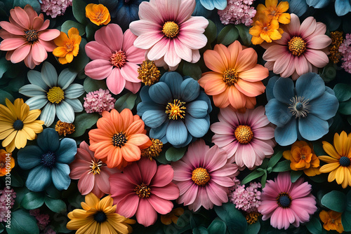 flower, blossom, bloom, flower petals, colourful, vibrant, pink, orange, yellow, blue, teal, green, foliage, leaf, garden, floral, botanical, nature, spring, summer, beauty, arrangement, design, artwork, illustration, image, photo, aesthetic, pretty, delicate, soft, pastel, dark, background, texture, pattern, closeup, macro, detail