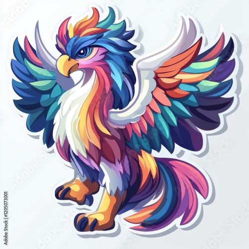 griffin, mythical, creature, colourful, vibrant, rainbow, wing, pattern, design, illustration, art, fantasy, majestic, beast, legend, animal, cartoon, style, vector, graphic, artistic, drawing, bright, high-coloured, plumage, feather, ornate, decorative, symbol, powerful, fantastic, imaginary, folklore, mythology, unique, creative, gradient, digital, artwork