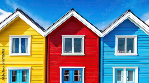 house, colourful, architecture, building, exterior, vibrant, facades, residential, home, window, roof, design, blue, red, yellow, sunny, street, pattern, nature, day, landscape, front, scene, structure, geometric, traditional, rural, environment, cheerful, symmetry, bright, living, cosy, modern, seasonal, inviting, beautiful, daylight, artistic, view, atmosphere, picturesque, urban