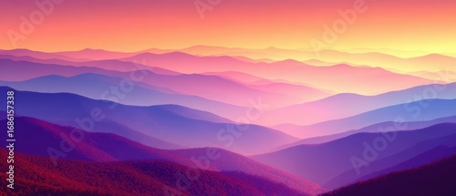 Vibrant Colorful Mountain Range at Sunset with Layered Hills and Sky in Warm Sunset Tones Illuminating Scenic Landscape