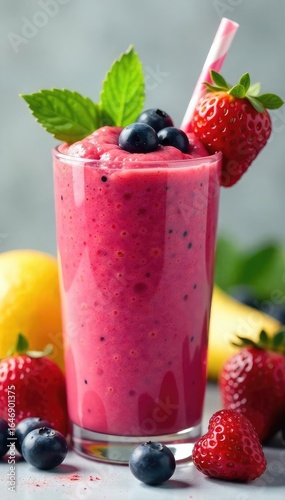 Vibrant Colorful Smoothie Fresh Fruits, Summer Refreshment, Healthy Eating