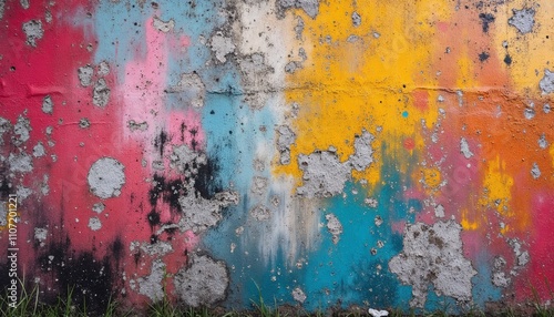 Vibrant colorful wall with chipped paint and texture for artistic urban background