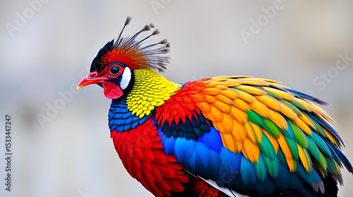 Vibrant colors in the plumage of a satyr tragopan (Tragopan satyra).