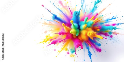 Vibrant colourful powder explosion isolated on white background, bright colours, powdery mess, isolated background