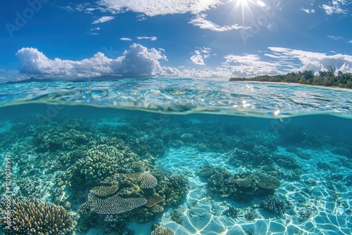 Vibrant Coral Reef Under a Sunny Tropical Sky
