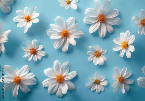 flower, cosmos, daisy, blue, background, vibrant, floating, serene, botanical, nature, floral, bloom, blossom, spring, garden, summer, bright, colours, design, decorative, light, beautiful, art, creative, pattern, freshness, delicate, growth, elegance, pastel, harmony, tranquil, soothing, arrangement, simplicity, wallpaper, cheerful, sunny, joyful, celebration, aerial view, soft, aethereal, natural beauty, peaceful, flora