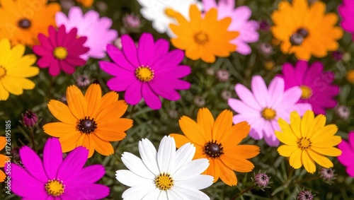 Vibrant Cosmos Flowers: A Colorful Tapestry of Pink, Orange, Yel