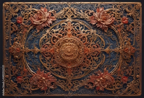 Vibrant die-cut cards, ornate patterns, festive decor, background, details