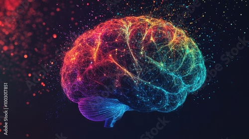 Vibrant Digital Brain Illustration with Network Connections