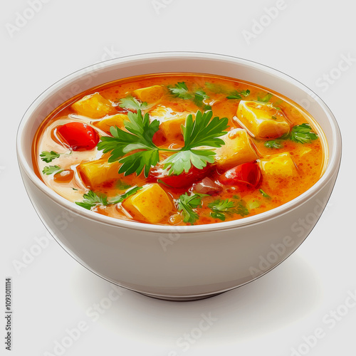 soup, bowl, vegetable, herb, colours, food, ingredient, cookery, meal, cooking, nourishment, healthy, dinner, lunch, vegetarian, preparation, comfort, steaming, fresh, aromatic, garnish, warmth, spice, vibrant, red, yellow, green, hearty, delicious, culinary, mediterranean, receipe, flavorful, organic, nourishment, favor, ingredient, aroma, presentation, seasonal, wholesome, homemade