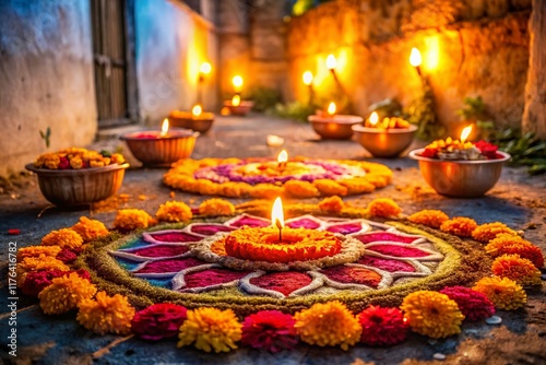 rangoli, flower, festival, india, celebration, light, urban, photo, festive, colourful, marigold, rose, traditional, culture, art, design, decoration, city landscape, texture, detail, night photography, warm light, grunge, weathered, wall, alleyway, bokeh, sparkle, holiday, spirituality, beauty, bright, symbolic, spiritual, ancient, heritage, asia