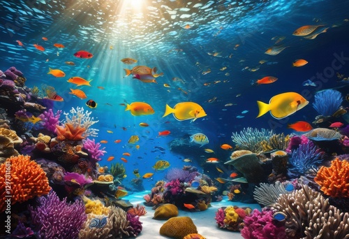 beauty, illumination, dynamic, effect, showcase, vibrant, underwater, motion, aquatic, display, texture, captivating, interactive, environment, brightness, engaging, marin, exhibition, advertising, aesthetic, dramatic, reflections, graphic, pattern, optical, splash, flow, surface, realism, imagery, harmony, art, creativity, luminescence, life, promotional, high-coloured, enchanting, stunning, coral, reef, tropical, fish, ocean floor, landscape, ocean, mesmerizing, exquisite, fauna