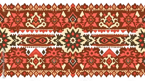 Vibrant Ethnic Pattern: A captivating seamless border design showcasing rich, earthy tones and intricate geometric patterns reminiscent of traditional folk art.