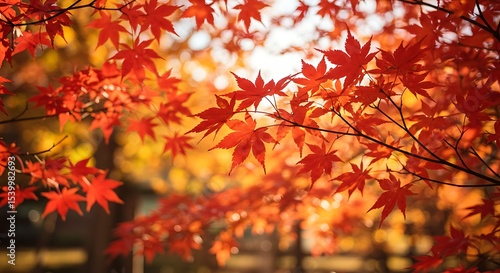 Vibrant fall leaves on a tree canopy