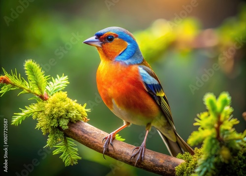 Vibrant Finch Bird Perched on a Branch Captured in Nature's Splendor Amidst Soft Greenery