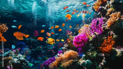 Vibrant fish swimming through a coral reef underwater paradise nature scene marine ecosystem diverse life