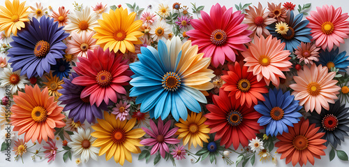 gerbera, daisy, flower, floral, colourful, vibrant, bright, cheerful, blossom, bloom, flower petals, spring, botany, botanical, nature, garden, flora, wildflower, bouquet, arrangement, high-coloured, background, decoration, ornamental, decorative, festive, celebratory, plant, blooming, season, ornate, leaf, foliage, many-coloured