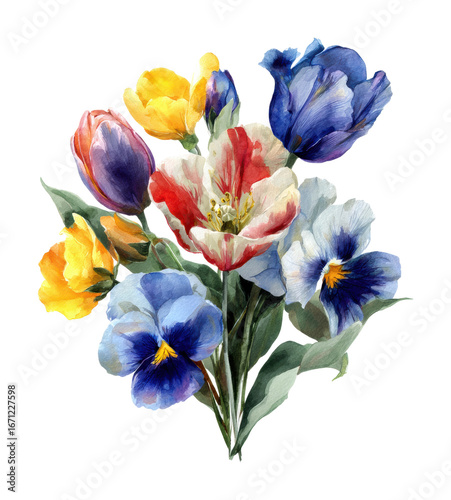 Vibrant floral bouquet digital colorful aesthetic isolated on transparent background