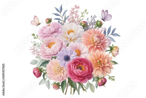 Vibrant floral bouquet with delicate butterflies, perfect for spring and summer designs