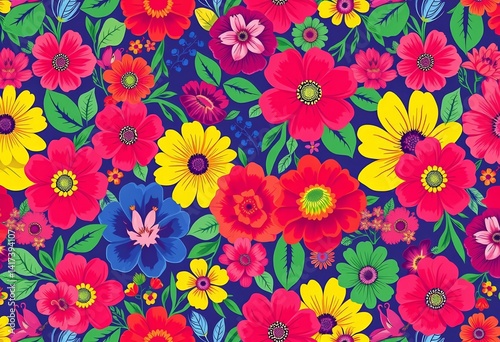 Vibrant floral seamless pattern, Liberty London style, copy space, texture, download