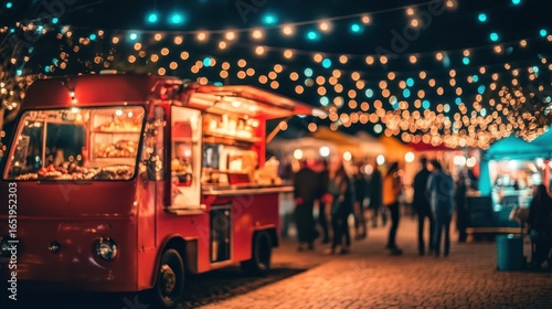 food, truck, night, light, market, festival, people, gathering, ambience, cookery, dining, street, celebration, joy, warmth, holiday, tasty, delicious, vibrant, cheerful, social, casual attire, eating, drink, local, red, seller, colourful, night, event, activity, entertainment, fun, joyful, community, seasonal, cooking, service, evening, atmosphere