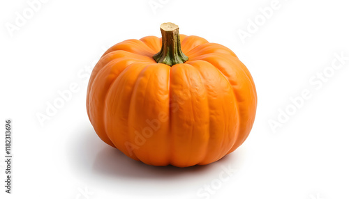 Vibrant Fresh Orange Pumpkin with Green Stem Isolated On Pure White Background