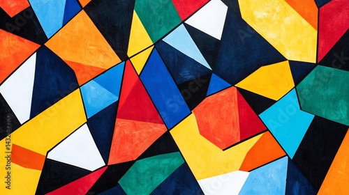 Vibrant Geometric Abstract Painting: Bold Colors and Angular Forms