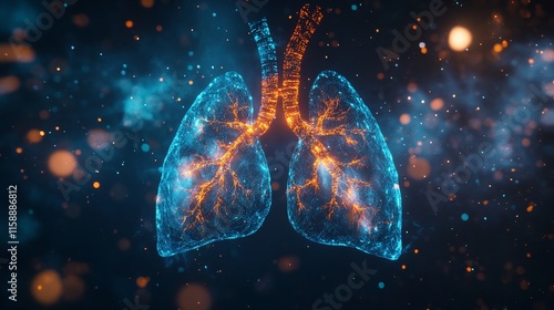 Vibrant Glowing Human Lungs Digital Art, Anatomical Illustration, Science Background, Medical Visualization