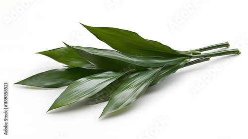 Vibrant green Dracaena leaves, elegantly arranged on a white background. Perfect for adding a touch of nature to your designs.