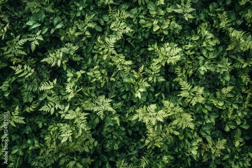 Vibrant green ferns and leaves create a lush, textured natural background, ideal for nature-themed projects